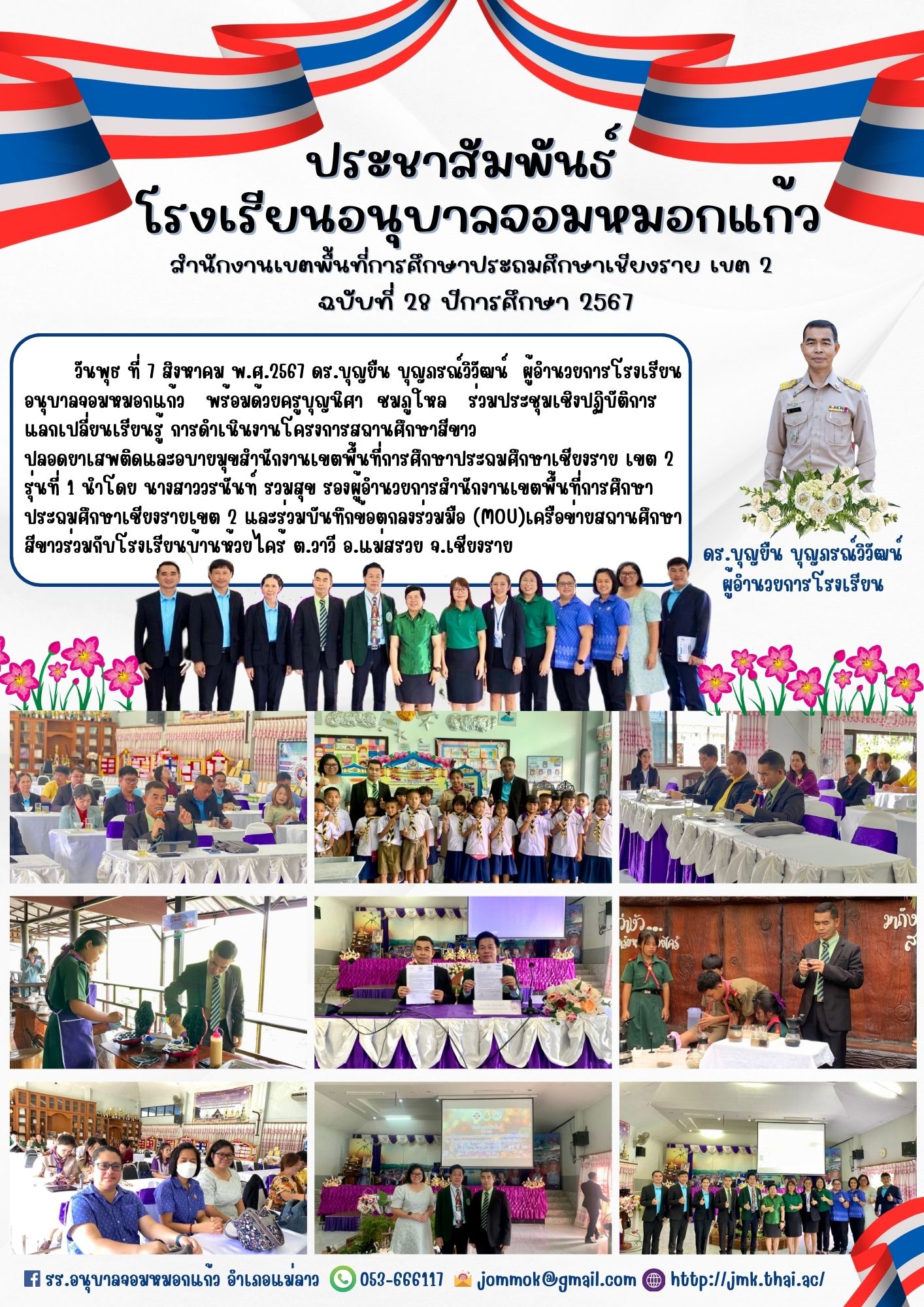ปลอดยาเสพติดและอบายมุขสำนักงานเขตพื้นที่การศึกษาประถมศึกษาเชียงราย เขต 2 รุ่นที่ 1 นำโดย นางสาววรนันท์ รวมสุข รองผู้อำนวยการสำนักงานเขตพื้นที่การศึกษาประถมศึกษาเชียงรายเขต 2 และร่วมบันทึกข้อตกลงร่วมมือ (MOU)เครือข่ายสถานศึกษาสีขาวร่วมกับโรงเรียนบ้านห้วยไคร้ ต.วาวี อ.แม่สรวย จ.เชียงราย